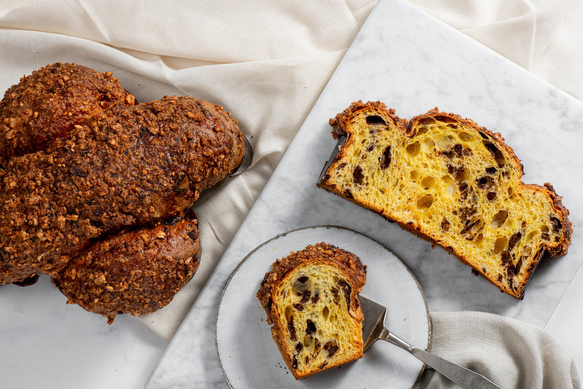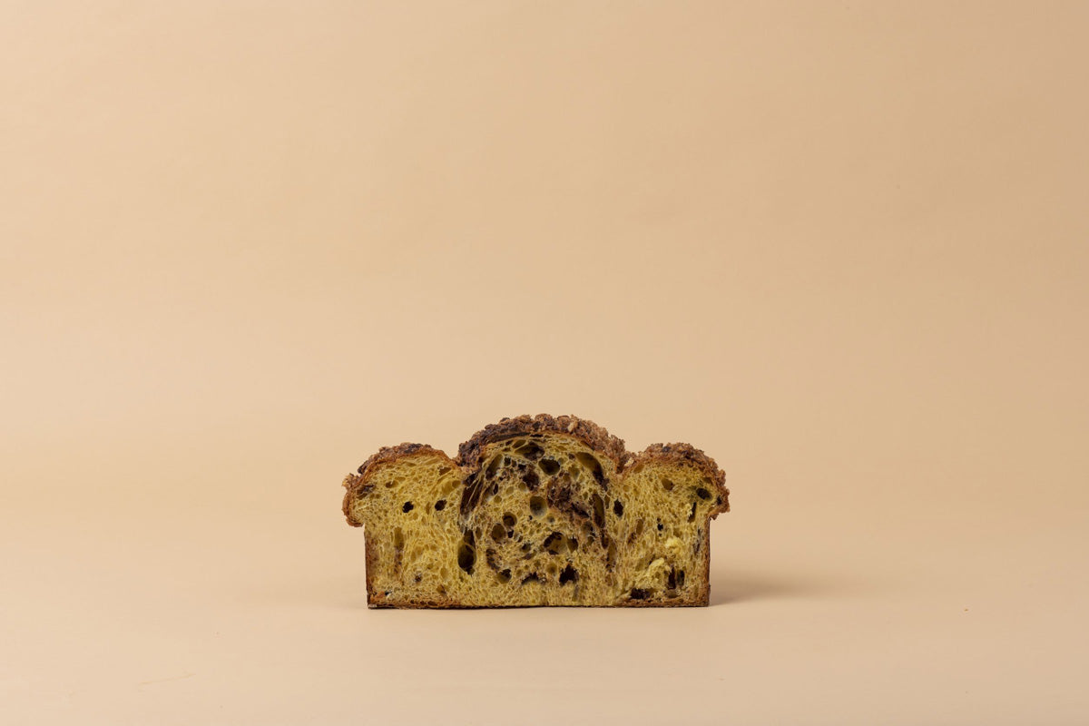 Lievito madre, farina di grano tenero biologica da filiera agricola italiana, tuorlo d’uovo biologico, bacche di vaniglia Bourbon biologica, burro di latteria, miele di agrumi, pregiato cioccolato Tanzania in grosse scaglie irregolari distribuite in maniera omogenea nell’impasto. L’aggiunta di una emulsione di mandorla biologica siciliana agli ingredienti conferisce, insieme alla cannella e agli olii essenziali di limone biologico, delicate note floreali e una specifica cremosità all’impasto. L’assenza di conservanti e il ridotto utilizzo di burro a favore di grassi vegetali, determina una data di scadenza di 60 giorni.