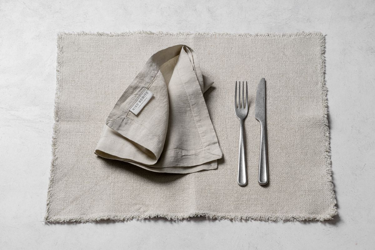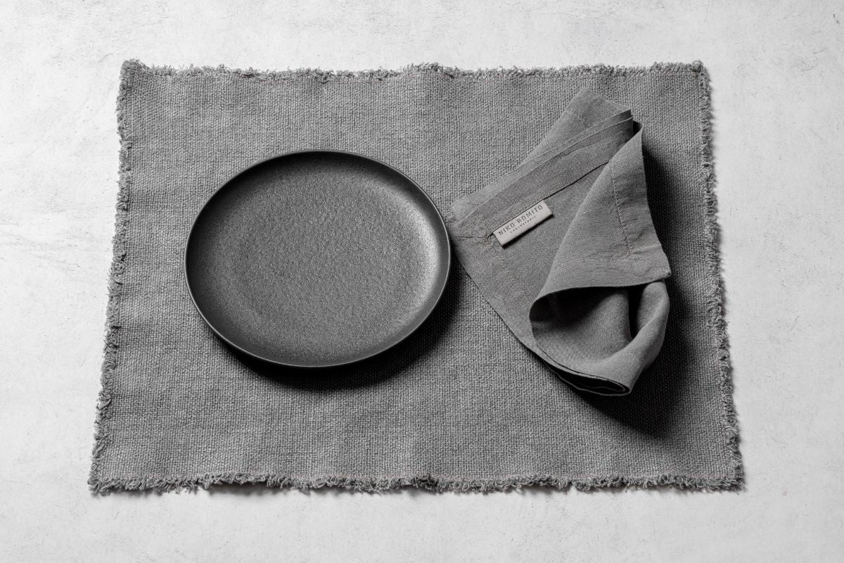 Maya, la tovaglietta in canvas di lino pesante con bordi sfrangiati, duttile e morbida al tatto. Perfetta per vestire la tavola in modo informale.