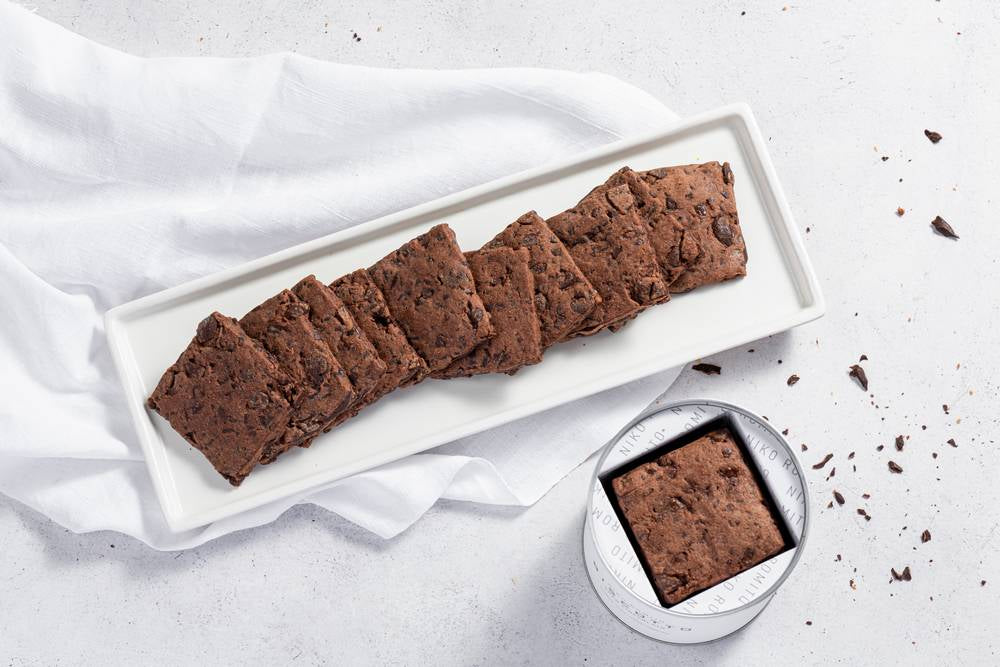 Cioccolato* “66%” (granella di cacao*, zucchero di canna*, burro di cacao*, lecitina di SOIA*)(31%), farina GRANO tenero tipo “1”*, bevanda di AVENA* (acqua, AVENA* 15%, alghe marine lithothamnium calcareum), zucchero*, olio di cocco*, amido di mais*, olio di girasole alto oleico*, cacao in polvere*, agente lievitante* (amido di mais*, tartrato di potassio da uva*, bicarbonato di sodio), rum*, sale marino.